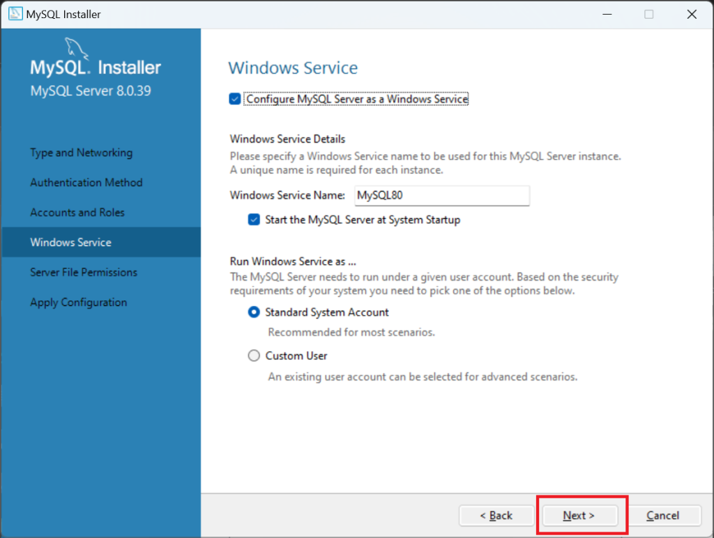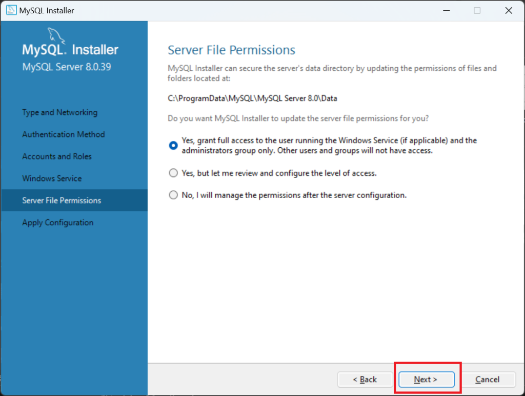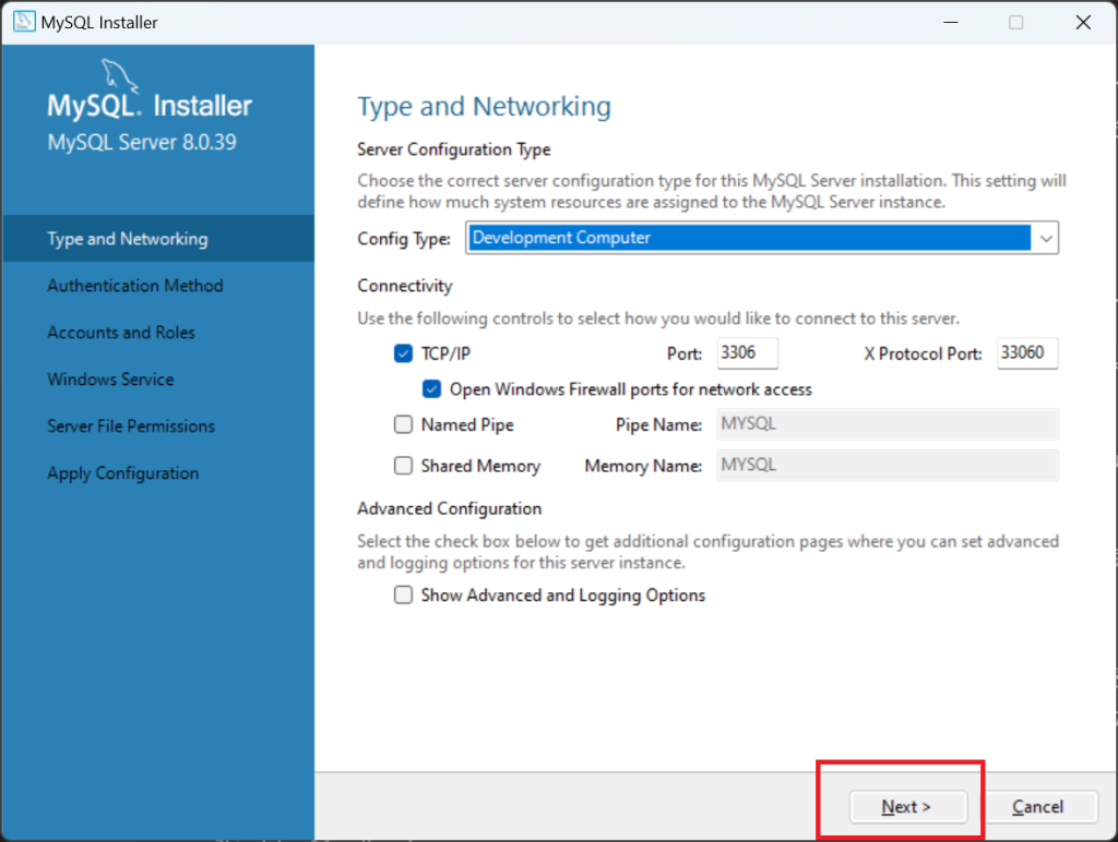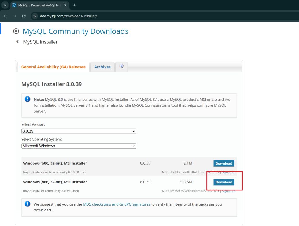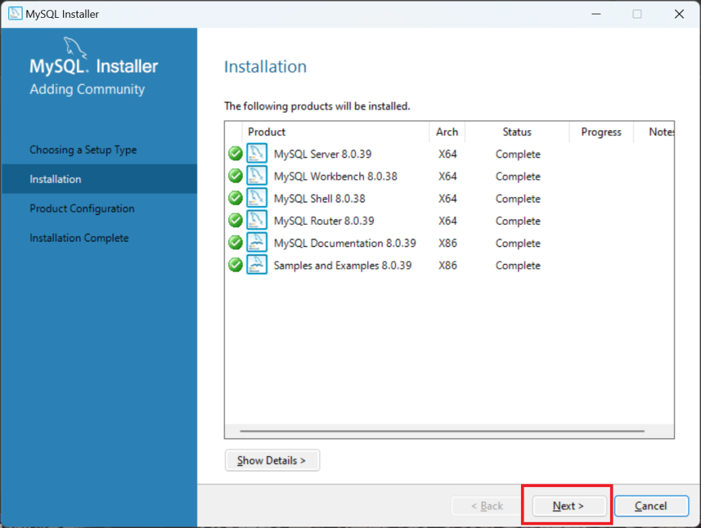mysql-installer-community-8.0.39.0.msiなるものがあるはずなので、実行。