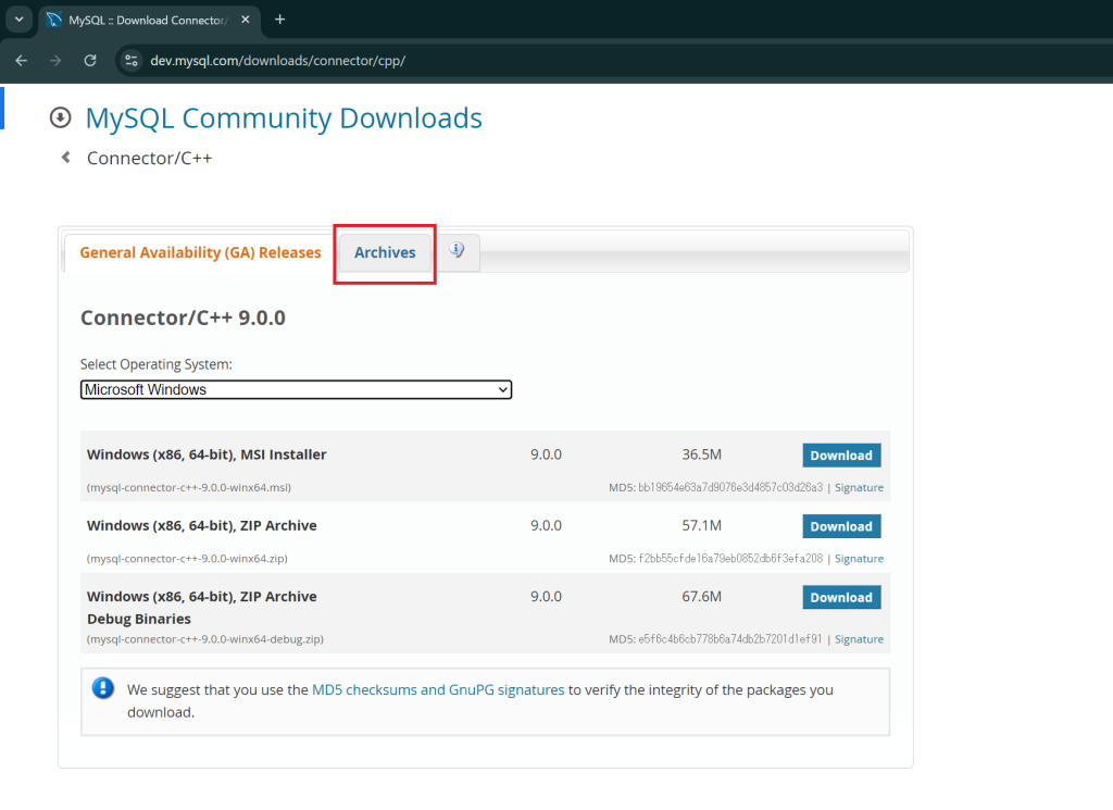 ブラウザで「MySQL Download」って打てばダウンロードページが出てきます。