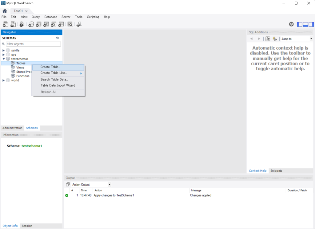 ツリーを深堀して、testteble1までたどり着き、テーブルを開きます。