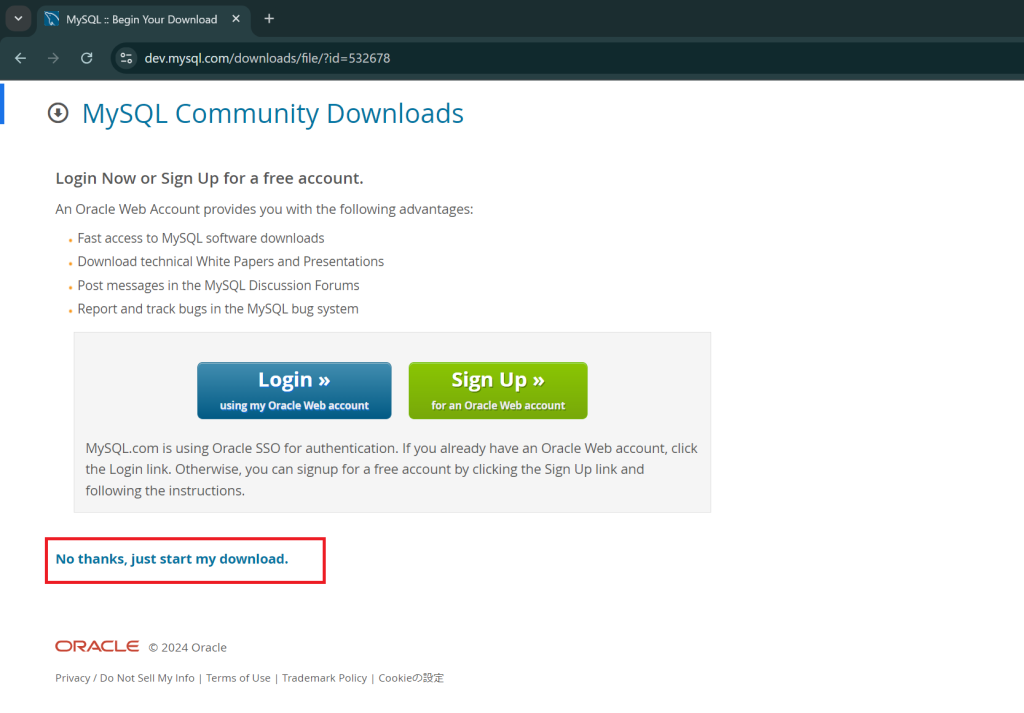 「MySQL Installer for Windows」を選択し、インストーラーをダウンロードします。