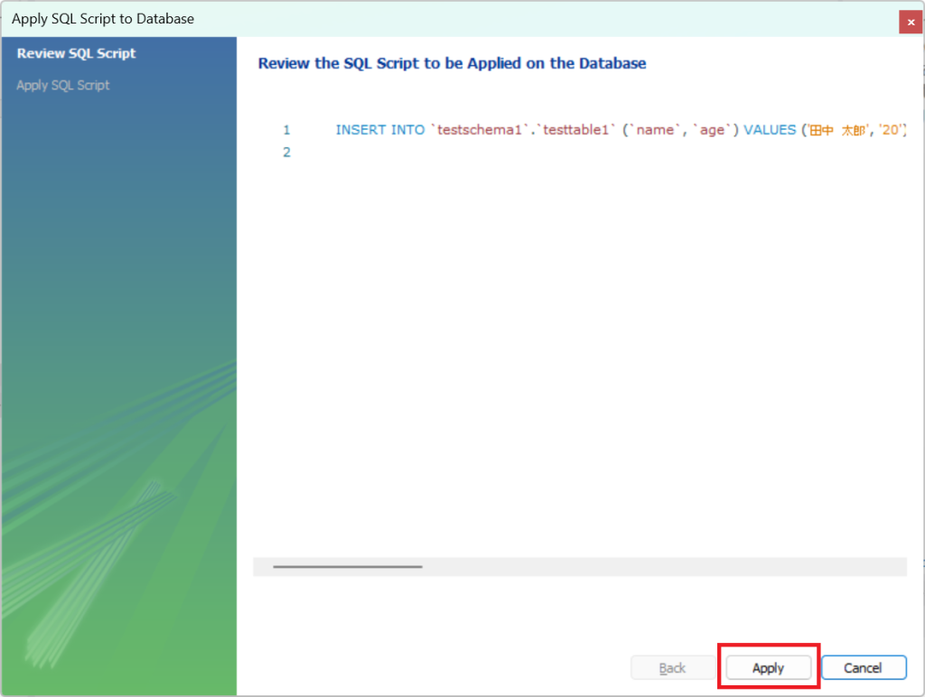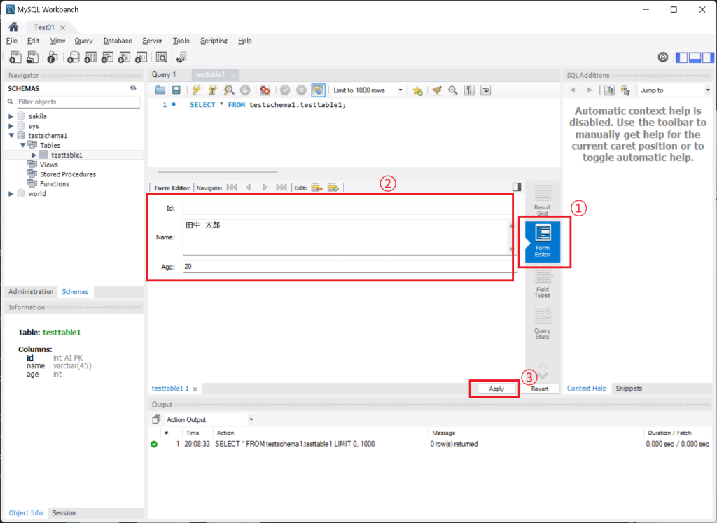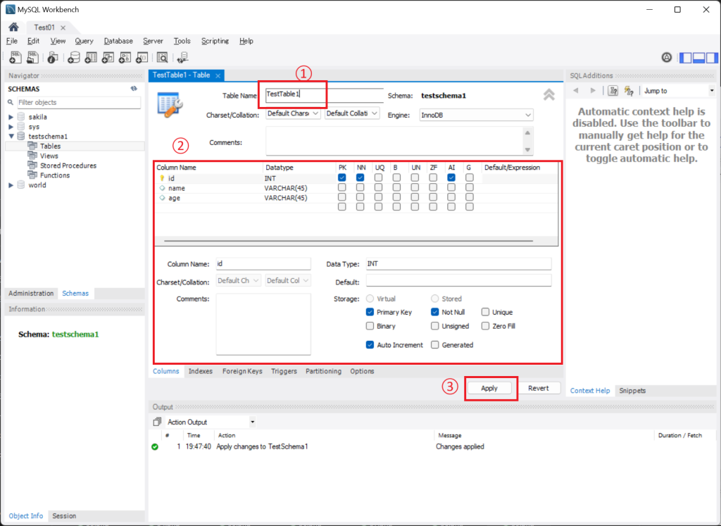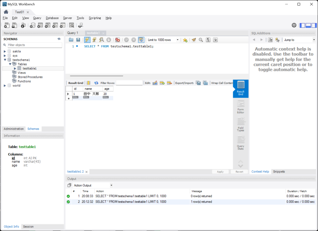 画像は、ageのDatatypeがVARCHARになってますが、後でINTに直してます。