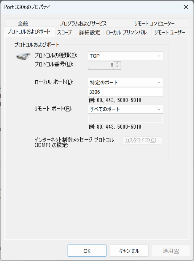 ポート3306へのアクセス許可を設定します。
