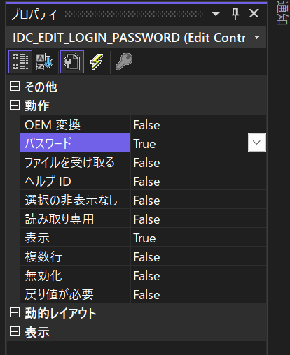 ダイアログIDは、プロパティからIDD_DIALOG_LOGINに変更しておきます。