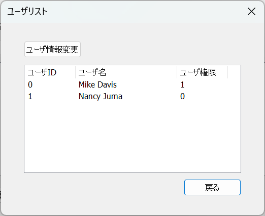 まず、メイン画面を開いてユーザ情報管理画面を押したときに出るダイアログを作ります。