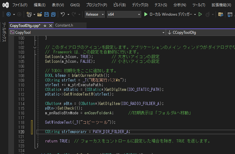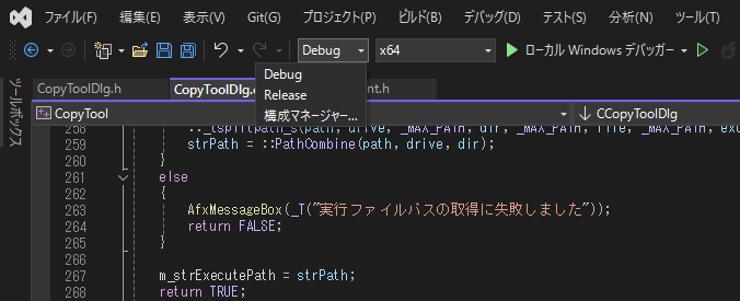 以前までは「C:\Users\tatsu\source\repos\CopyTool\x64\Release」の中にあるexeを開いていましたが、