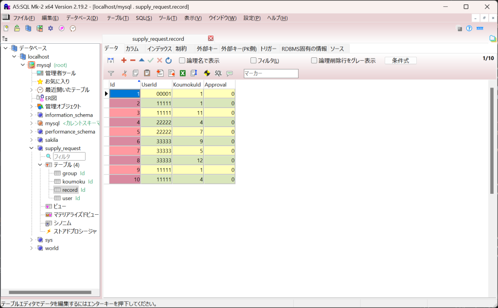 strSQL += TABLE_RECORD + ".Approval AS RecordApproval "; // recordテーブルの承認状態