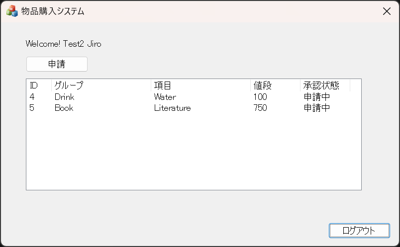 IDが11111、22222、33333でログインし、それぞれ申請を行ってみます。