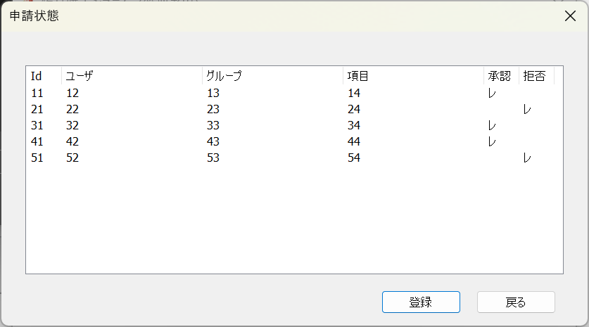 今回は履歴テーブル情報を申請承認ダイアログに表示させました。
