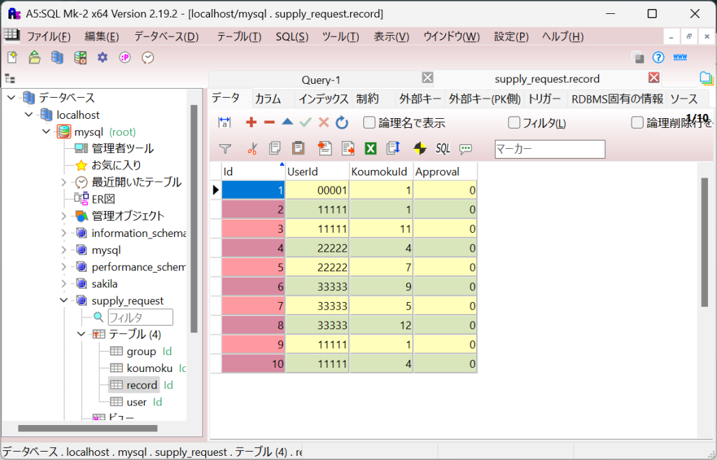 つまりrecordテーブルのApprovalが0のものだけ表示させます。