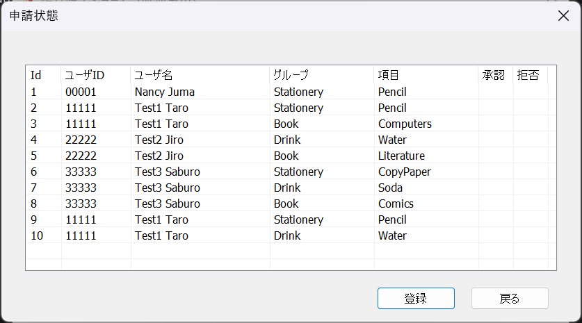 とりあえず、ユーザIdが11111の人を承認・拒否してみます。