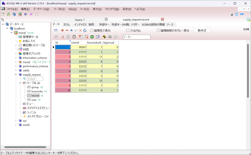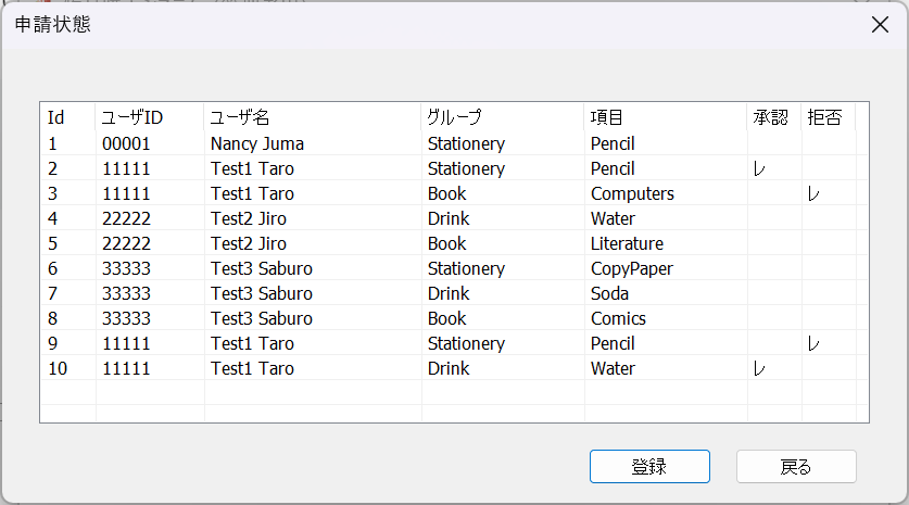 マップから履歴テーブルのIdとApproval状態を取り出し、