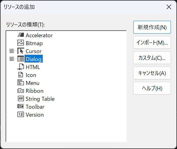 リソースビューからコンプロジェクトのDialogフォルダを右クリックし、