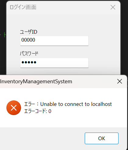 OK(ログイン)ボタンとキャンセルボタンをダブルクリック。