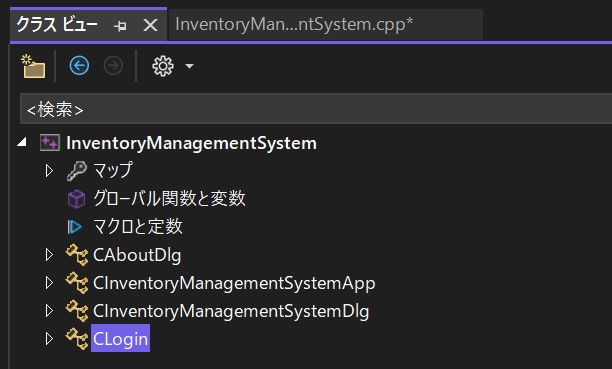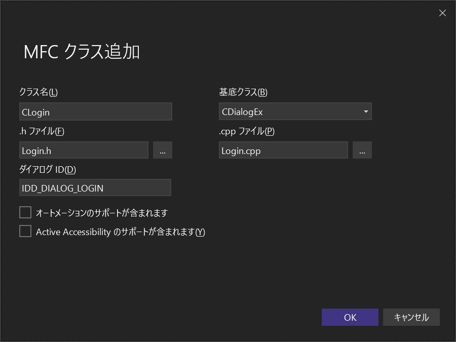クラス名はCLogin、h名はLogin.h、cpp名はLogin.cppに命名。
