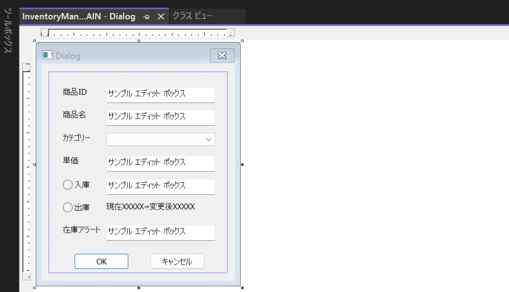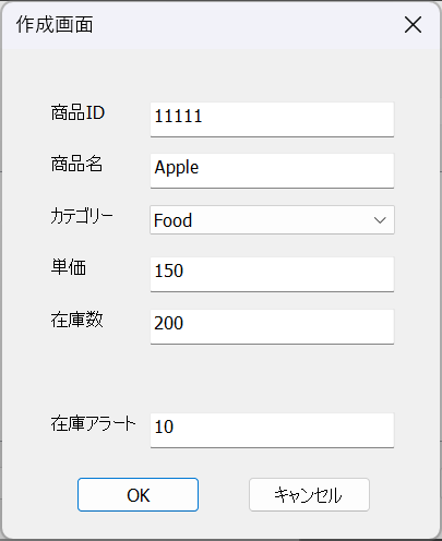 ・商品ID、商品名、単価、在庫数、在庫アラートのエディットボックス