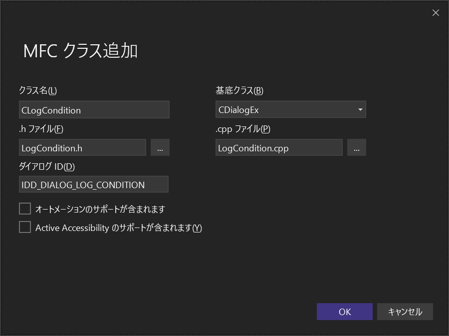 プロパティから、ダイアログIDはIDD_DIALOG_LOG_CONDITIONに変更。
