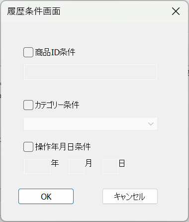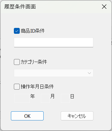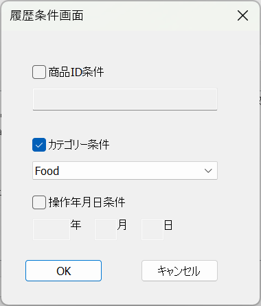 履歴検索条件画面から、抽出条件をこちらに持ってくるのですが、