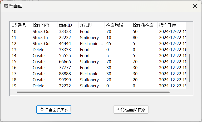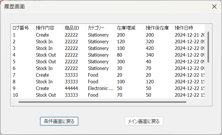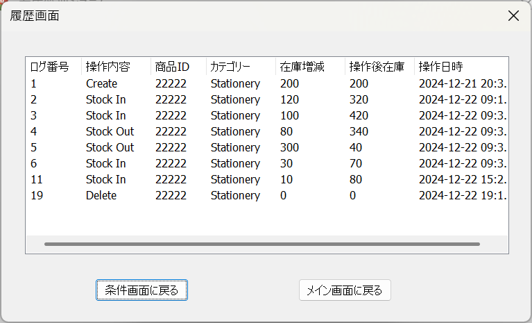 if (Manager.bGetLogData(strLogID, strOperation, strProductID, strCategory, strQuantity, strCurrentStock, strDateTime, iRoop, m_strProductID, m_strCateory, m_strTime) == TRUE)