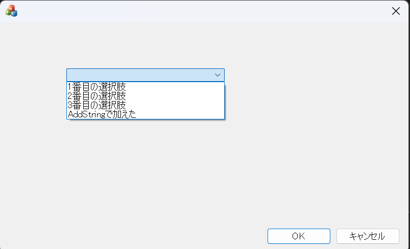 pCombo->InsertString(1, _T("3番目の選択肢"));2番目の選択肢は「そもそも1番目がないじゃん」って判定で