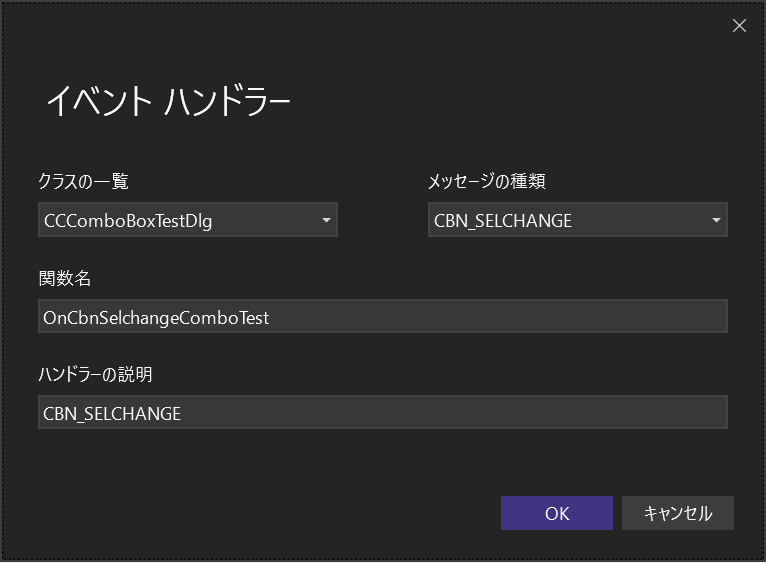 クラスはCCCombBoxTestDlgを選択にするのを忘れずに。