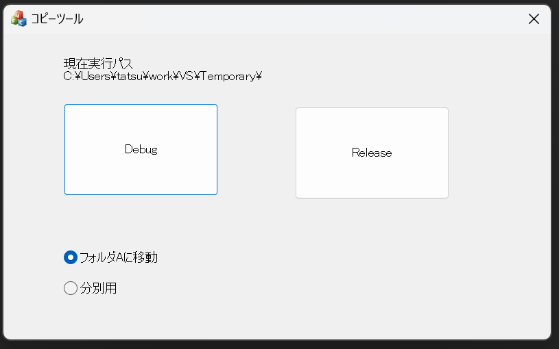 出来上がったCopyTool.exeを、Temporaryフォルダは以下に置きます。