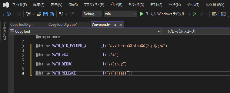 #define PATH_DIR_FOLDER_A _T("C:\\Users\\tatsu\\フォルダA")