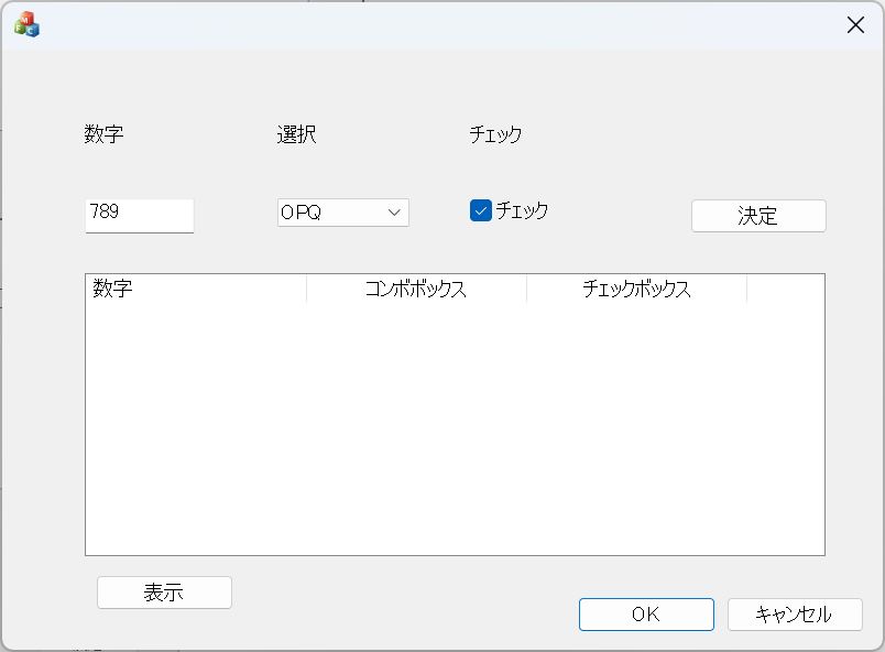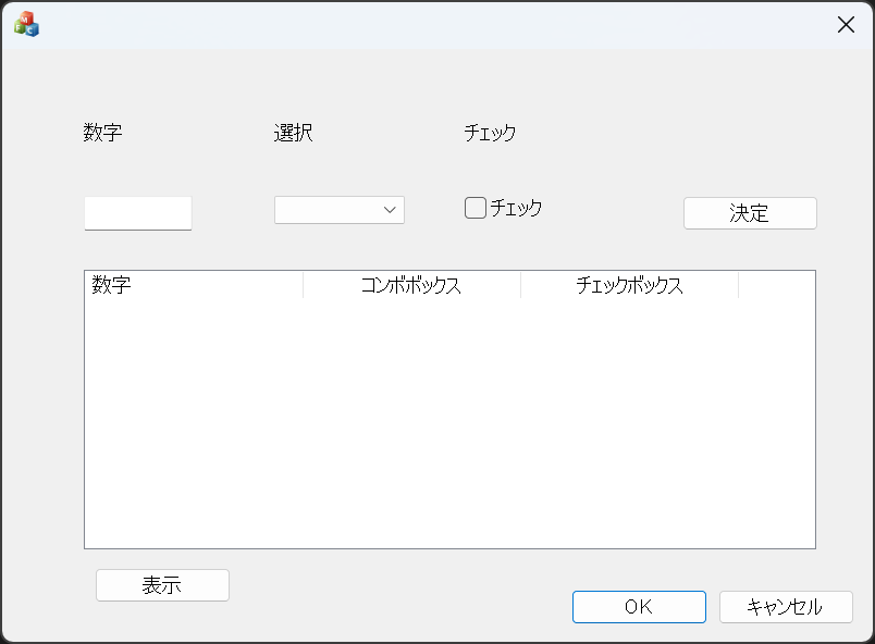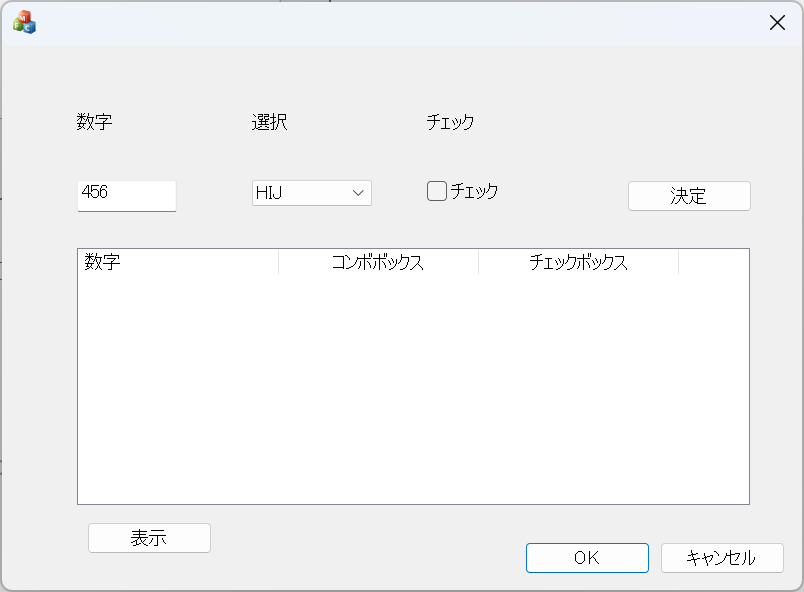 エディットボックス、コンボボックス、チェックボックスを用意しました。