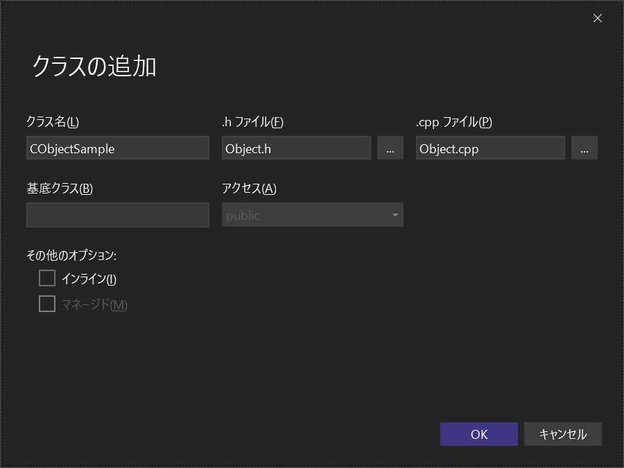 CObjectSample* obj = new CObjectSample(); // CObjectクラスのオブジェクトを作成