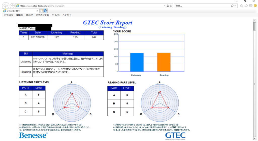 TOEFLは持ってなかったので、指定されたGTECを受けました。