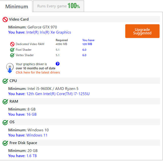 実際、Can you run it?で確認してみると