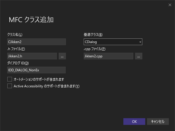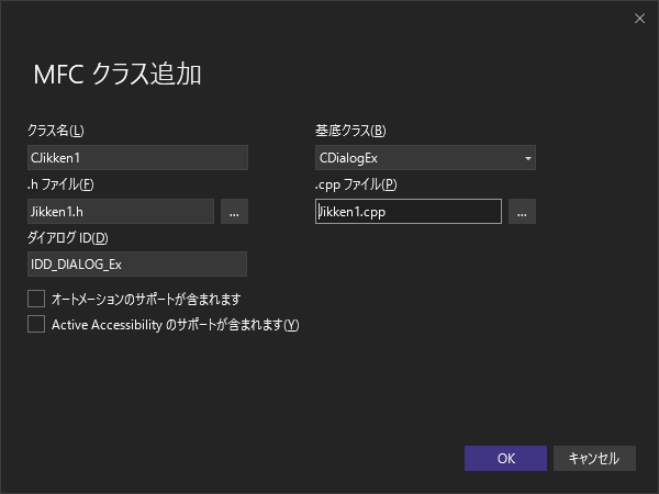 なんで詰まったかって、新しいクラスを作るときの、基底クラスがCDialogExだったんですよね。