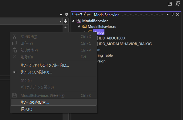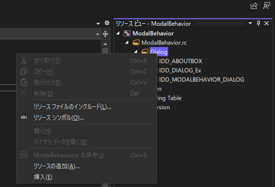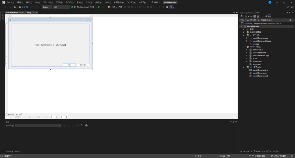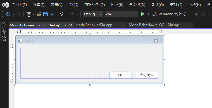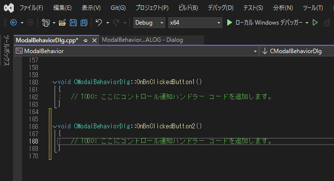 ModalBehaviorDlg.cppに処理を追加させておきます。