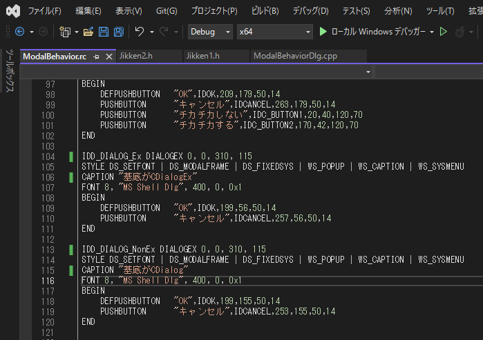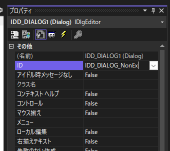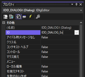 これは「チカチカしない」ほうなので、IDD_DIALOG_Exとしておきます。