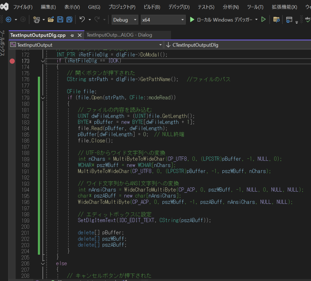 追加する部分はif (iRetFileDlg == IDOK)の場合。