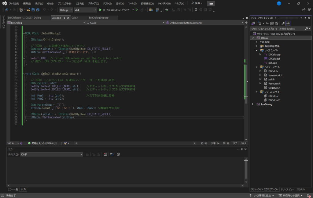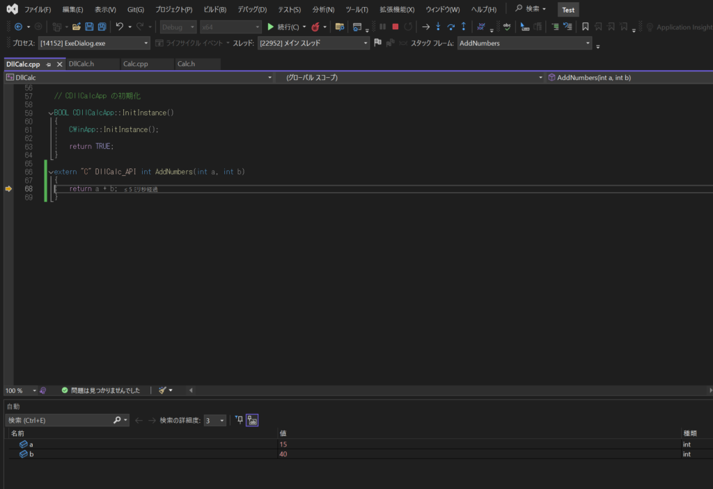 次いでDllCalc.cppに、以下を追加。