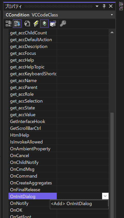 ダイアログが追加されるので、IDをIDD_CONDITIONにしておきます。